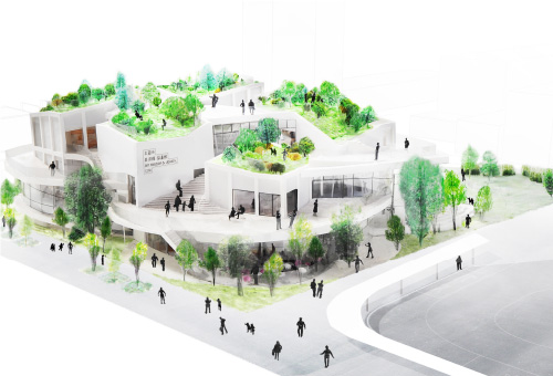 さて、そんな太田市の太田駅前に1月14日に「大田市美術館・図書館」がオープンしました。複数の建築業者が行政とタイアップして完成した施設だけあって、そこの区画だけ異彩を放っております。